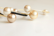 細いワイヤーにコットンパールとシードビーズを
