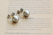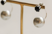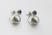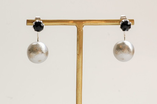 キャッチの湾曲した先端にグレーのコットンパールが付いており