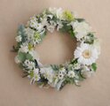 白い花を集めてみました。プリザーブドフラワーのガーベラ、アーティフィシャルフラワーのマトリカリア、スイトピー、ドライフラワーのアンモビウム等々…