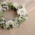 ハーブのイタリアンパセリの葉やローズマリーや白い小枝も入れてナチュラルで清楚なイメージでリースを作りました。