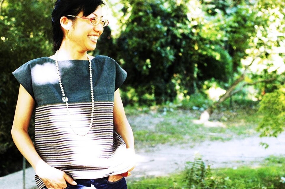 静岡は遠州綿紡ぎで制作したフレンチスリーブ ブラウスです。