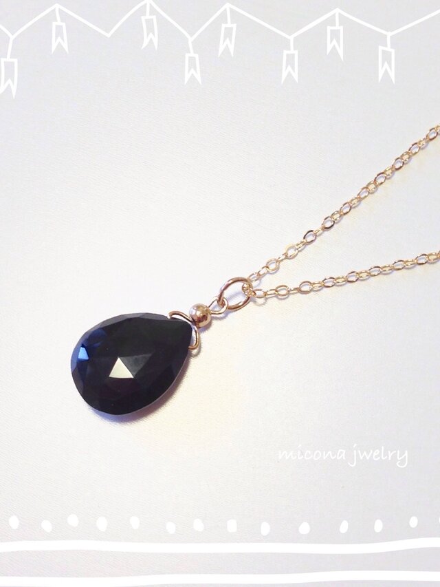 ボリュームのあるペアシェイプ型のブラックスピネルを使用したペンダントです。
