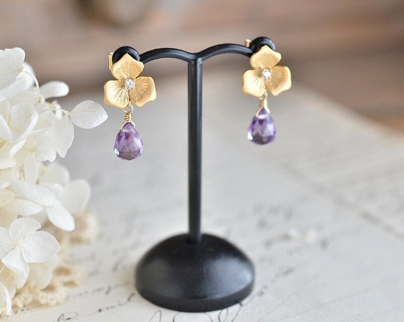 【 素材 】 お花モチーフ(マットゴールド・合金)・天然石アメジスト