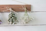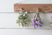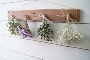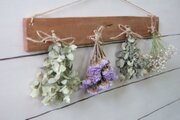 自家製ドライフラワーを古材風に加工した板にセットしました。