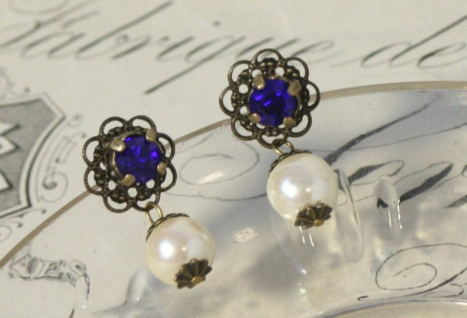 ヴィンテージスワロフスキーは鮮やかなネイビー。
