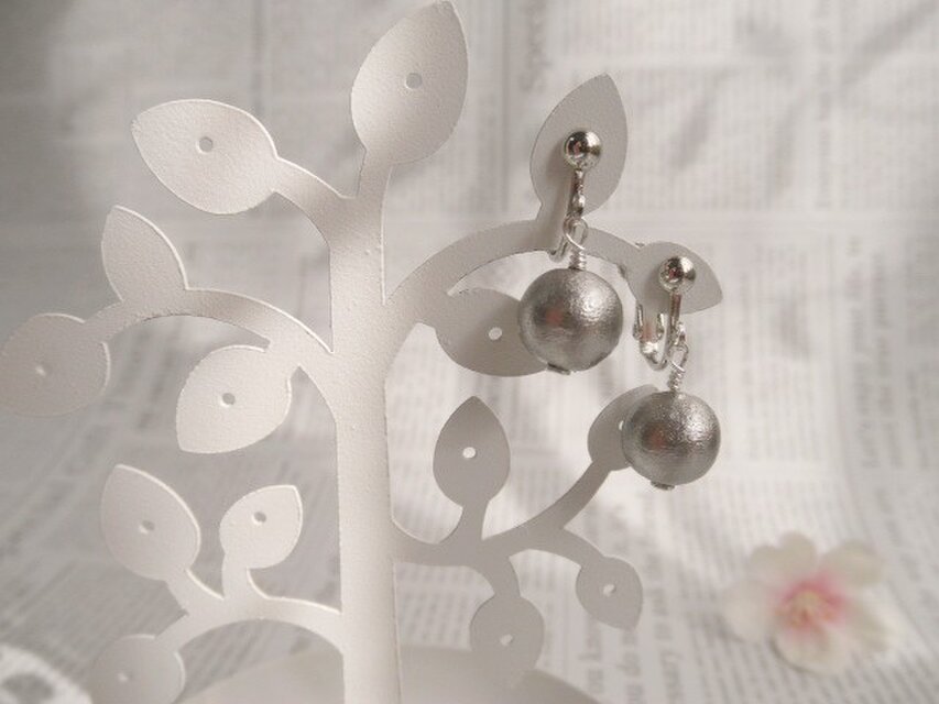 10mmのコットンパール(クラシックグレー)のシンプルイヤリングです♪