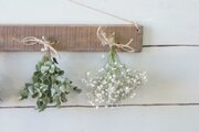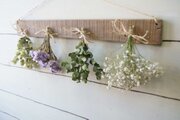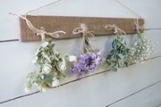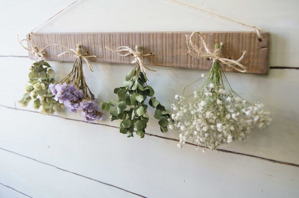 自家製ドライフラワーを古材風に加工した板にセットしました。