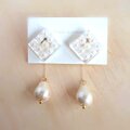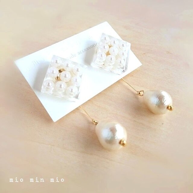 ゆらゆら雫◇◆クリアパールスクエアピアス