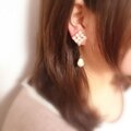 しずくコットンパールが耳の後ろからゆらゆら揺れる、