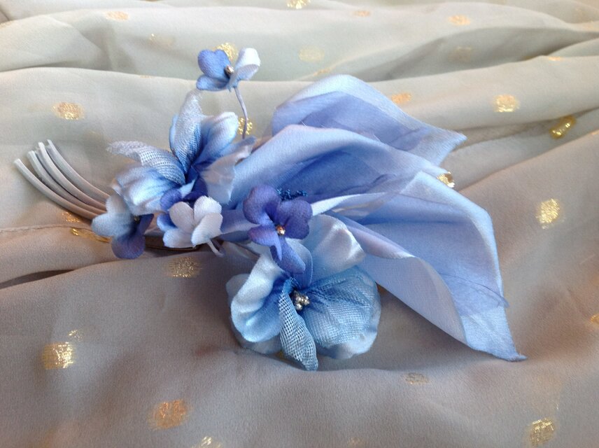 上品な艶があり軽くふんわりしたカラーのコサージュです。