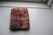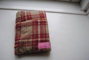 生地を手縫いでちくちくつなげ、世界に1つの本カバーを作りました。