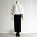 ゆる袖ボートネック7分袖丈プルオーバー_選べる裾仕様_リネン100%_White