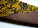 バティックチャップ(型押し)の名古屋帯です。からし色の地に、デザイン性の高い伸びやかな花柄が、渋めな着物に合わせると着物姿が映えると思います。