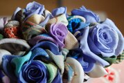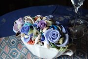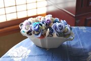 和布とプリザーブドローズの装花 ー プリばらワーク うすぎぬの青