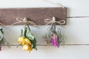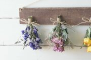 自家製ドライフラワーを古材風に加工した板にセットしました。