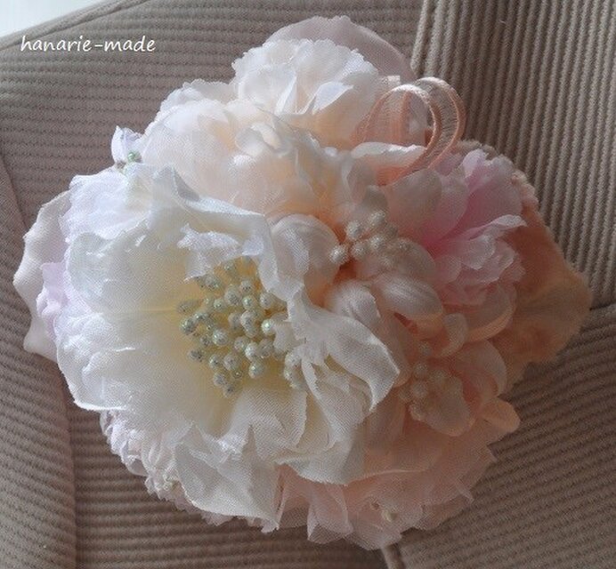 ホワイトやピンクの愛らしい花をあつめて コサージュにしました。