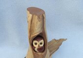 ふくろうの入っているウロは木の節部分を彫り上げ