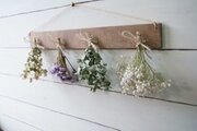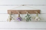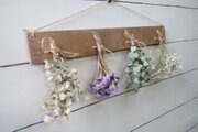 自家製ドライフラワーを古材風に加工した板にセットしました。
