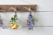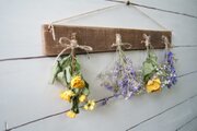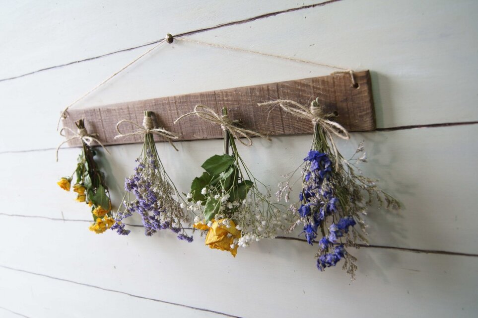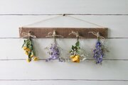 自家製ドライフラワーを古材風に加工した板にセットしました。