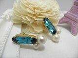 こちらコットンパールとスワロフスキー(インディゴ)を使用致しております。