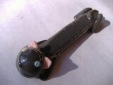 体は黒泥、耳と目はカラー粘土で、透明釉掛けして1240度で焼き上げた陶器です。