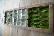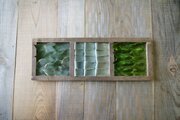 アンティーク調に仕上げた自家製フレームにプリザーブド加工された3種類の葉っぱを貼り付けました。