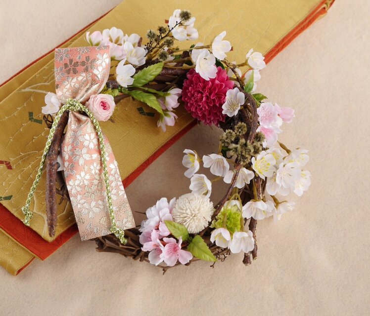 桜を待ちきれない方に是非飾っていただきたいリースです。