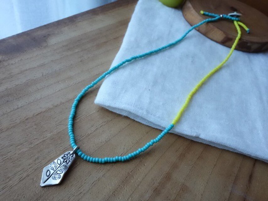 *Flower 銀トップ+つぶつぶのネックレス 水色×イエロー