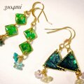 しかく型とさんかく型からお選びください。下で揺れる天然石は色、形が写真と異なる場合がありますがお任せください☆
