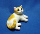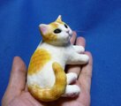 軽量粘土で作った手乗り猫さんを白の正絹縮緬でくるみ茶トラ模様をつけました。