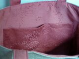 中袋には厚手芯を貼り深さ12センチの仕切りを付け薄手芯を貼ったポケットをつけました。