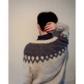 アルパカとリネンの混ざった糸で編んだシンプルな編み込み模様のカーディガンです。モヘヤとは少し手触りが違って、モフモフしています。軽くてあったかいです。