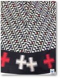 白地に細かい編み出の様な模様の銘仙と黒地に赤とピンクの十字の銘仙、