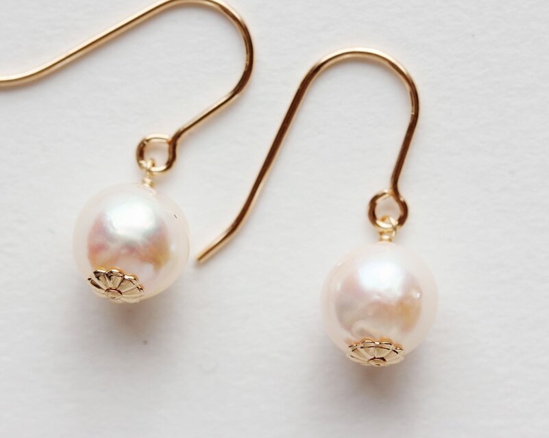 【14kgf】国産アコヤ真珠(バロック)8mm花座ピアス
