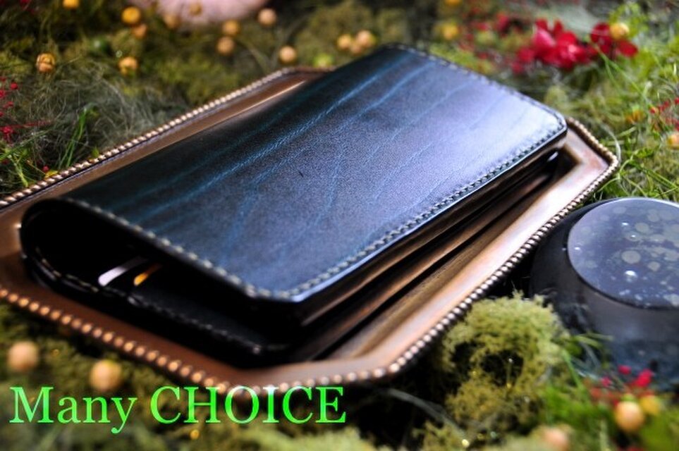 革の宝石ルガトー・長財布(ファスナー)(緑×黒)