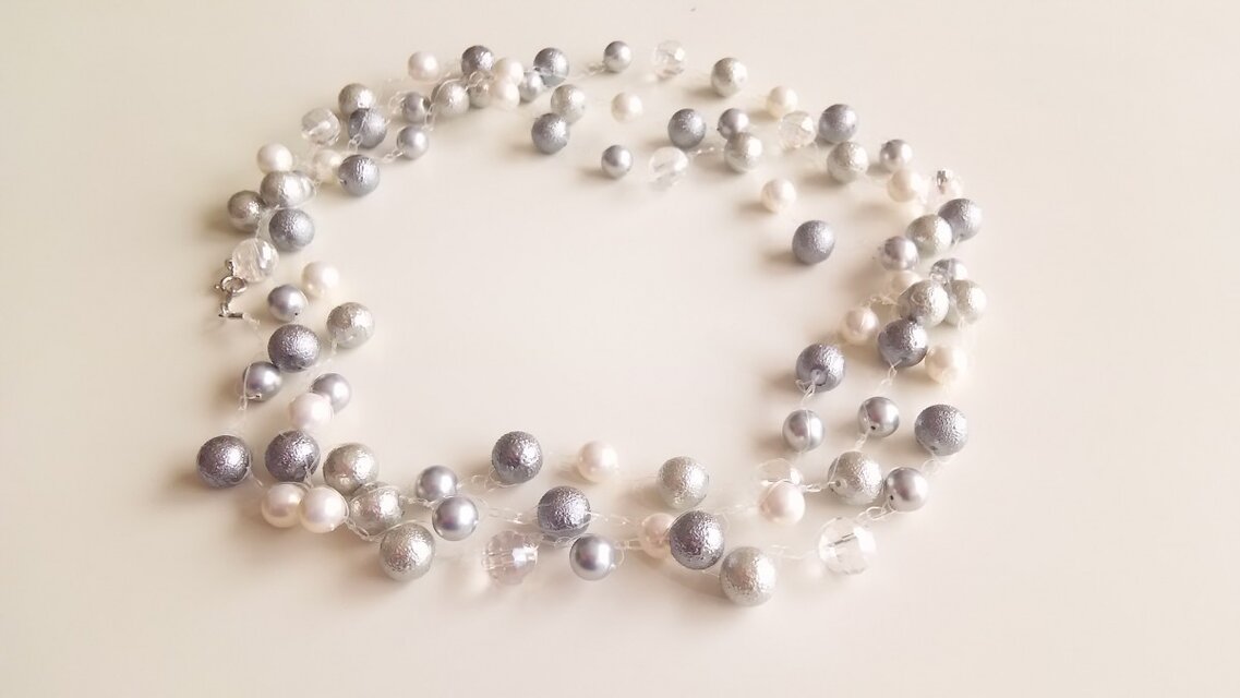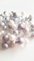 大小のシルバーパール、ホワイトパール、クリアガラスを