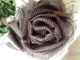 八ヶ岳の麓、標高1100mほどの所で採取した、もちの木科の常緑小高木、冬青(そよご)で染めた、シルク100%のボーダー柄のストールです。