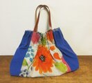 大胆な花模様を中心にしたバルーン型バッグ。