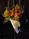 麻紐つきでぶら下げて楽しめるコーン型のアレンジです