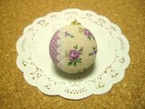 鮮やかな紫のバラにレースがあしらわれた柄は、カントリー調でありながら上品で……