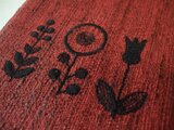 シャンタン風のプリントをした綿麻のスラブ生地に花刺繍をした文庫本サイズのブックカバーです。