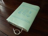 届きました。 とても、綺麗な色のカバーで裏地も モダンでした。刺繍の蝶々がピッタリです♪ 今まで、お願いしたカバーと、イメージが違いますが、 明るい爽やかな作品で、大変気に入りました。 ありがとうございました