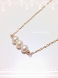 綺麗な淡水パールのポテトを3つ並べた、シンプルですがボリュームのあるネックレスです。