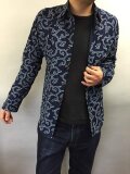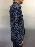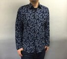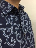 新作手作り長袖吉兆藍木綿シャツ(中唐草模様)