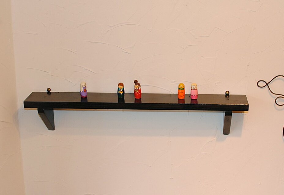 渋い、チャコールブラックカラーのハンドメイドシェルフです。