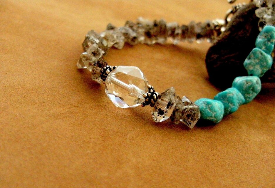 両剣水晶(ダブルポイントクリスタル)とターコイズを合わせたブレスレットです。