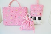 シューズ入れのみ裏面もピアノ柄になっています。その他点はバレリーナ柄になっています。表地はキルト生地を使用しています。