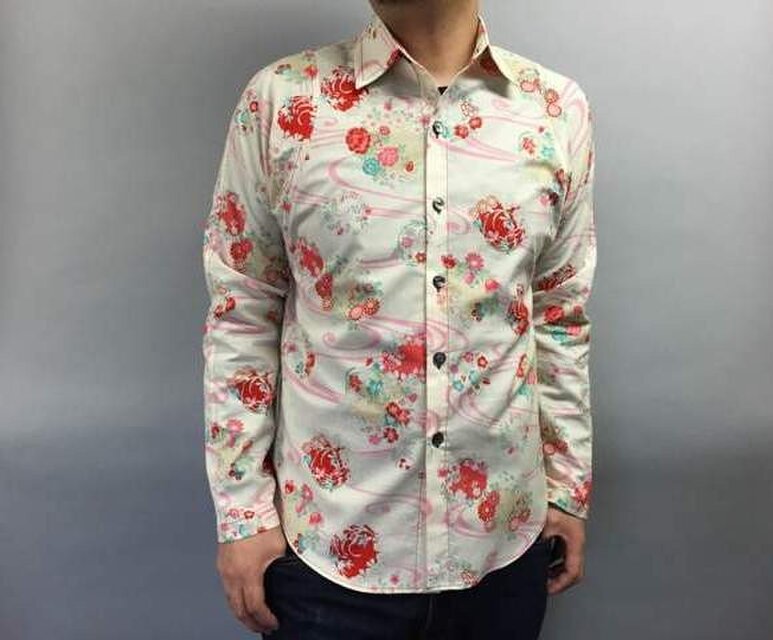 薄手の生地に流水と花模様が描かれた粋なシャツ