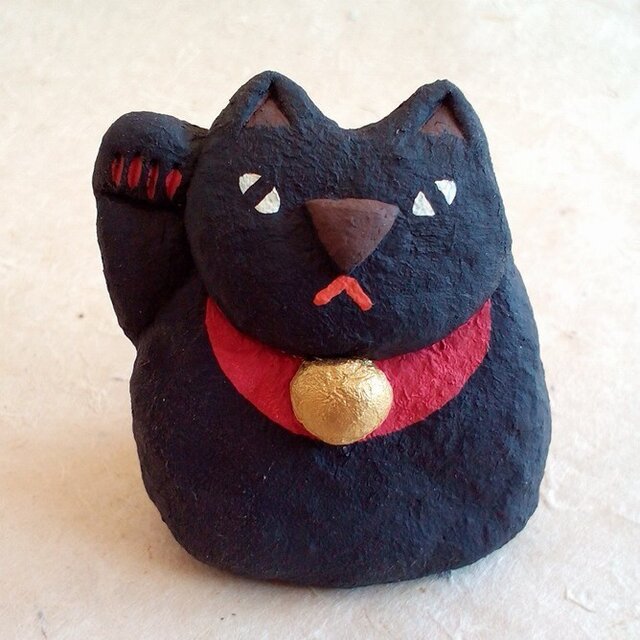 漆喰で造った福を招く招き猫。5.5 × 5.0 × 3.5cm。
