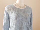 爽やかなサックスブルーのメリノウールを総レース模様で編んだチュニックです。